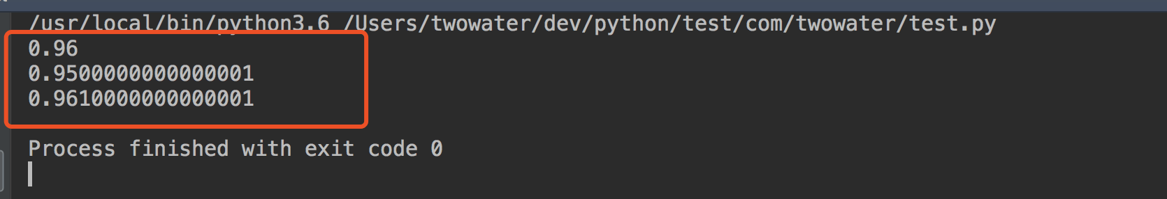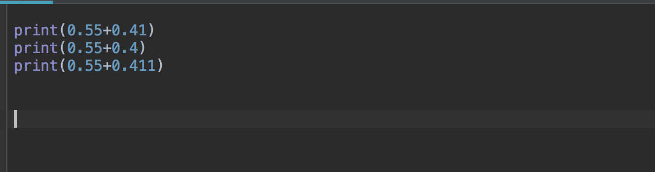 对于第一个还好,0.55+0.41 等于 0.96 ,运算结果完全一致。可是后面两个,你会发现怎么出现了那么多个零。