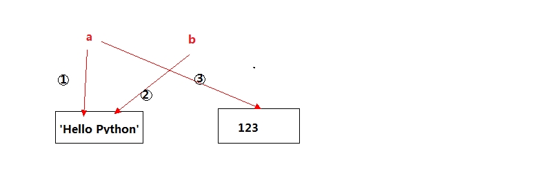 创建了变量 b ,变量 b 也指向了a 指向的字符串 Hello Python