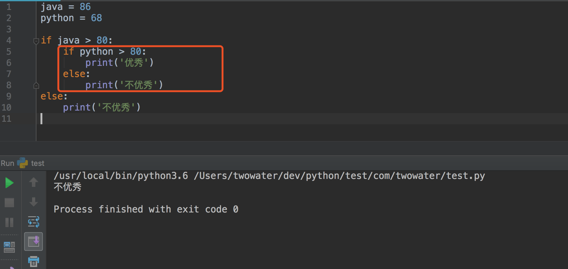 当然这只是为了说明 if 条件语句是可以嵌套的。如果是这个需求,我个人还是不太建议这样使用 if 嵌套的,因为这样代码量多了,而且嵌套太多,也不方便阅读代码。