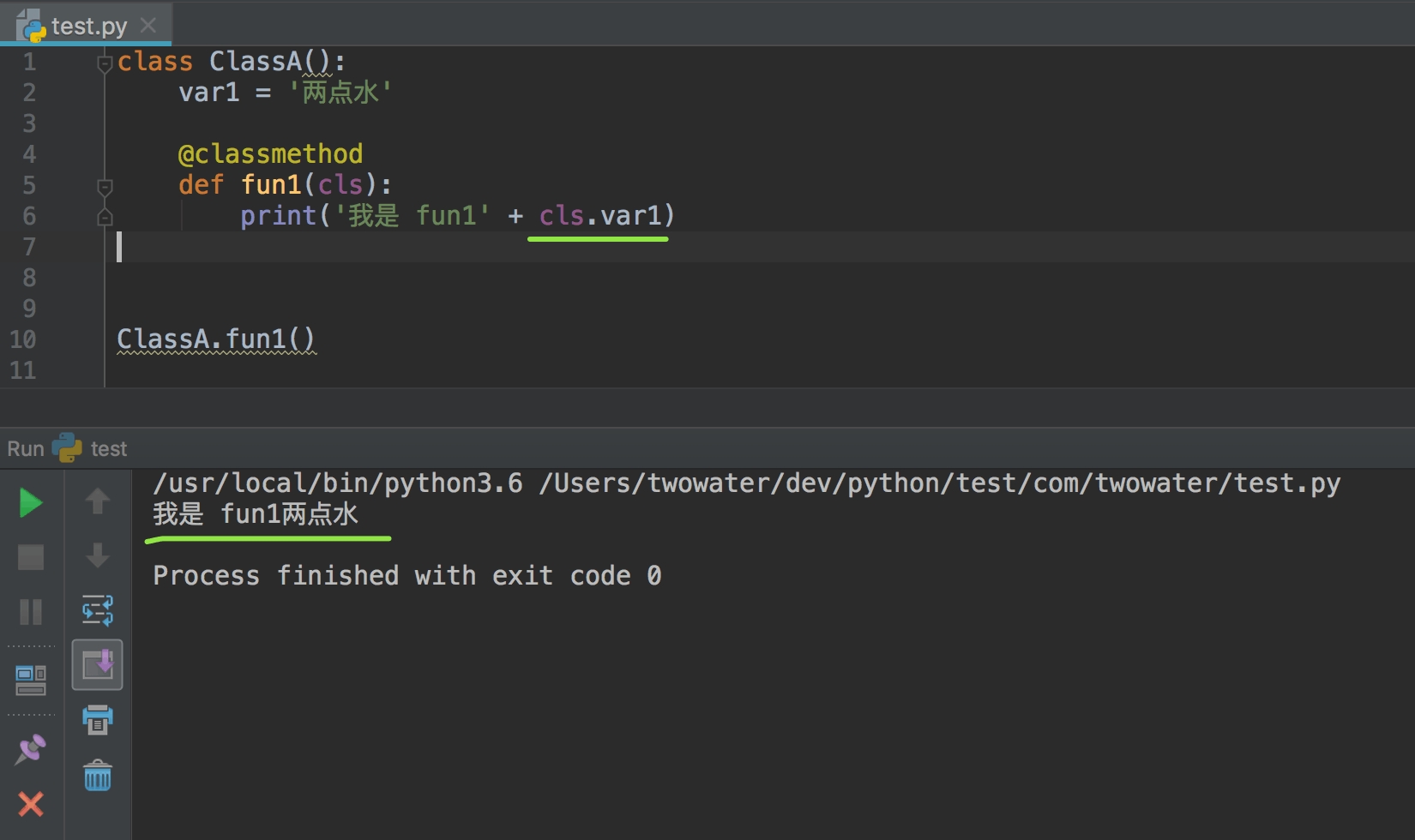 声明该方法是类方法。只有声明了是类方法,才能使用类属性类方法想要使用类属性,在第一个参数中,需要写上