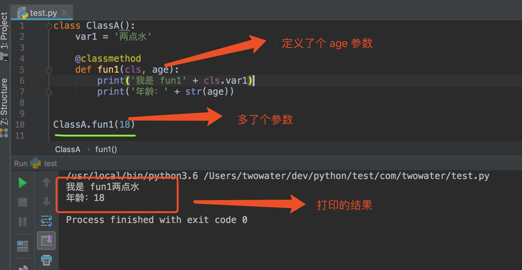 上面我们学习了类方法如何调用类属性,那么类方法如何传参呢?